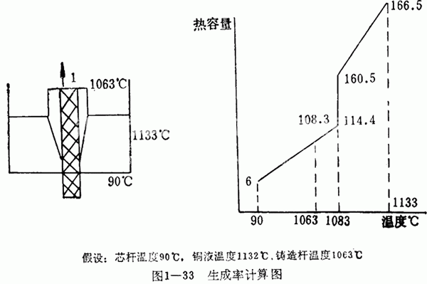 我們將浸涂后增加的銅重量與芯桿重量之比稱為生成率。生成率可通過(guò)熔融銅放熱和芯桿吸熱的熱平衡計(jì)箅得出。